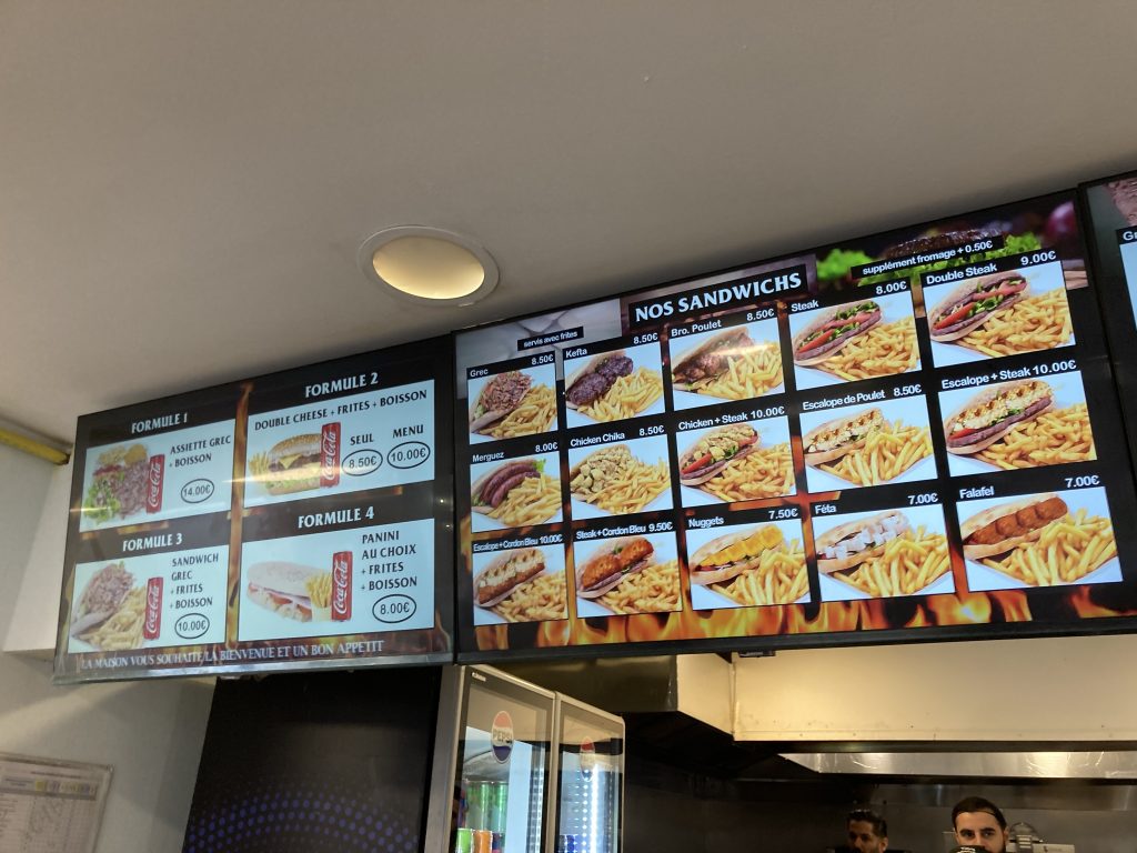 - 注文時に入れる野菜と肉を選択できて、肉は子羊の肉(agneau)や鶏肉(poulet)が選べたりする。