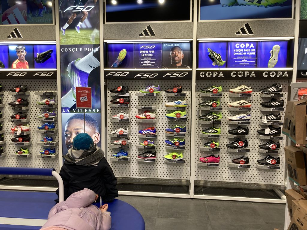 • Les Halles の Intersport でサッカーシューズを見てみたが、子供のサイズが見つからず。